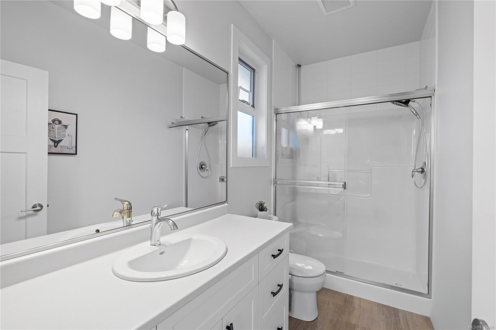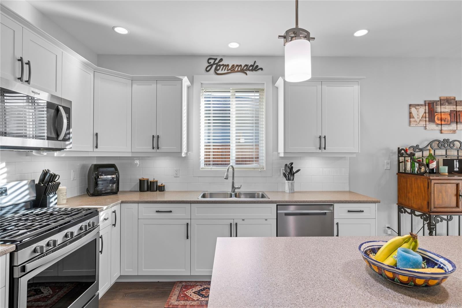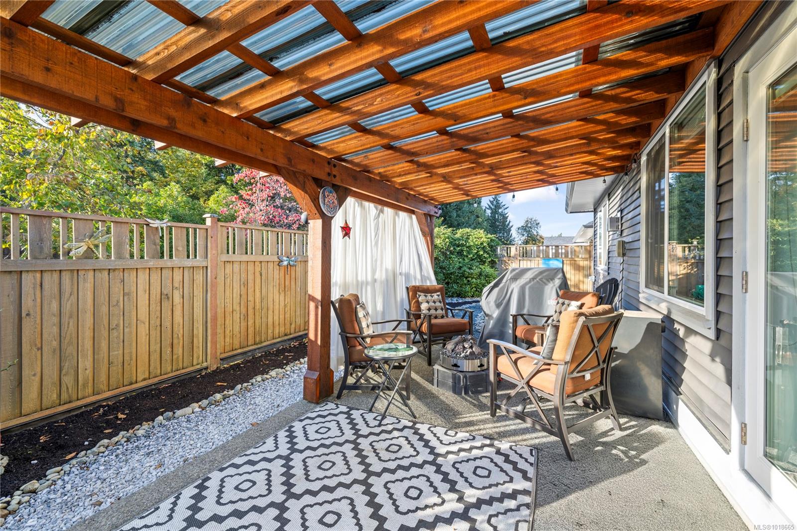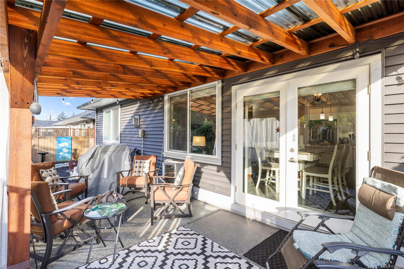 Backyard BONUS!?, read on! This 'LIKE NEW' executive style 1469 sqft rancher offers BIG value in the quiet and quaint community of Artisan Gardens, in Chemainus. Loaded with upgraded finishes from new, this home also offers a completely reinvented low-maintenance yard, epic patio pergola, as well as an ultra efficient heat pump (heating/cooling) + gas stove/BBQ hookup/fireplace. Full sized bedrooms, a large primary with ensuite and a fully finished double garage round out this perfect package. But wait, there's more! Open the gate of your fully fenced yard, to an exclusive BONUS backyard. Gardeners dream? Indeed. See you soon! (2 Pets allowed - NO size restriction, NO occupant age restriction, Bare Land Strata $143)